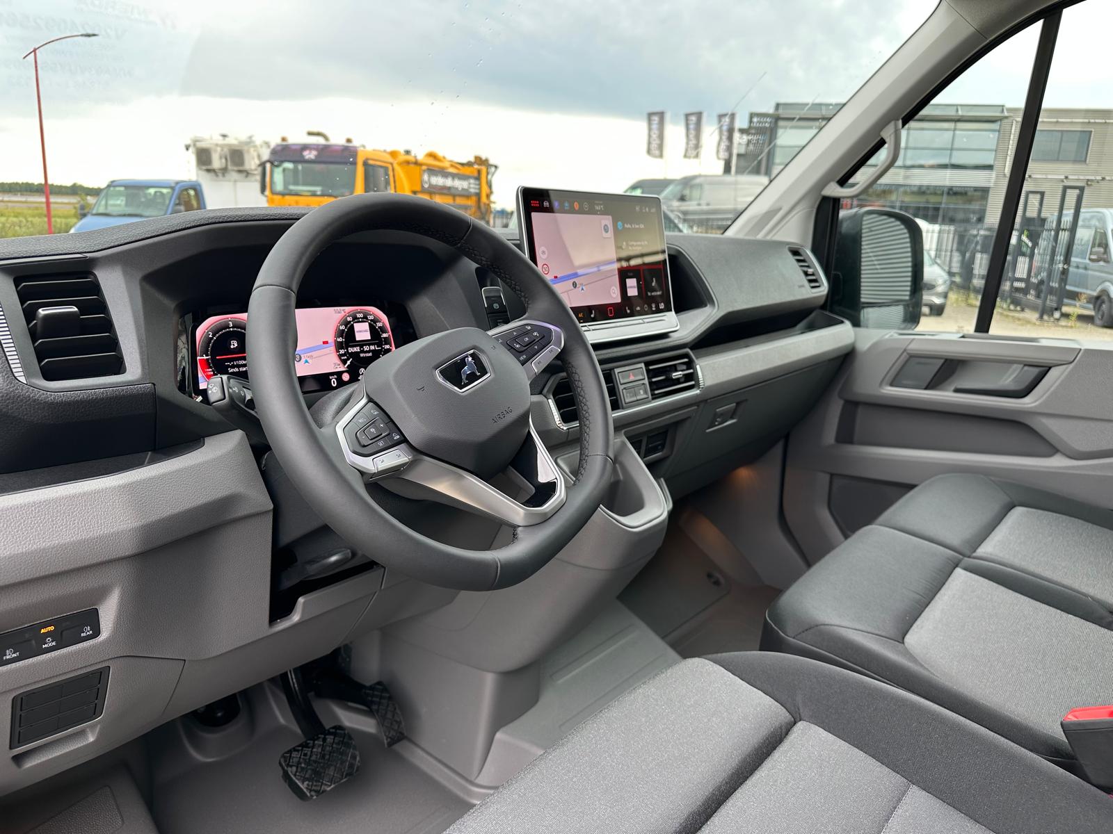 Deze spiksplinternieuwe MAN TGE komt vers van de band in full option uitvoering: adaptieve cruise control, climatronic airconditioning, 12,9" MAN media navigatie (met Apple CarPlay en Android Auto), draadloze telefoonoplader, digitaal dashboard, multifunctioneel in leder bekleed stuurwiel, parkeerhulp voor en achter, instelbare achteruitrijcamera voor extra zicht in de moeilijkste verkeerssituaties, geveerde bestuurdersstoel met massagefunctie en bijrijdersbank mét opbergvoorziening en praktische neerklapbare rugleuning in het midden. Ook is deze MAN TGE voorzien van een dubbele schuifdeur.
